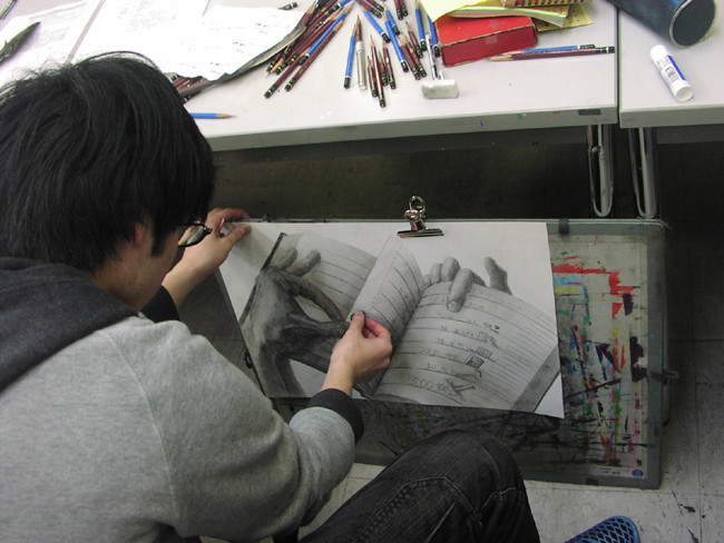 02 March まだまだ続くよ☆ 直前講習in七条教室☆ こんにちはっ。京都市立芸大の入試が終わり、はや三日。七条教室では、まだまだ直前講習が続いています。国公立中期日程、後期日程の入試に向けて、最後の追い込みに入っています。今はまさにクライマックス。人物デッサンをしている生徒、色彩を対策している生徒、鉛筆デッサンを対策している生徒……、様々な大学の、様々な課題に取り組んでいます。賑やかな教室風景。自然と活気付きます。おやおや、こちらの二人は前のめりになり、画面に張り付いて描いていますね。作品の問題点を探し、自分で気付き、自分で解決案を見つけ、修正する。己の作品のクオリティに対する飽くなき追求心。この一年間で自然と身についた姿勢だと思います。うーん、なんか皆が頼もしく見える。本当に成長したなぁ……。よーし、明日も頑張るぞー。 杉太郎 [0回] 2011/03/02 (Wed) 23:01 杉太郎関係 Trackback() Comment(0)