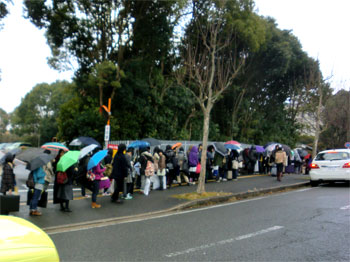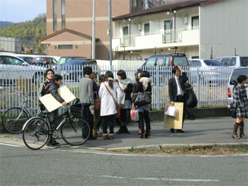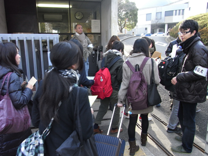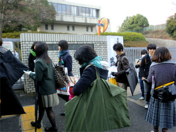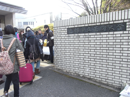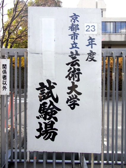 25 February はじまりました。 京都市立芸術大学 入試1日目。今日は9:00-13:00 描写の試験です。天気はあいにくの小雨ですが、気温は高めです。アスクの先生が校門前で出席をチェックしてます。みんな無事、来たようで一安心。 何が出るのかなあ…どきどき緊張の時間です。8時半に開門、みんないってらっしゃい!!今頃頑張ってるんだろなぁ。第1科目が終わって出てきた表情を見るまでご家族の皆さんも、先生方も気が気じゃないですね。この3日間は本当に緊張します。また、ご報告いたします!北山教室から 吉井 ←斉藤先生と生徒 いい写真なので掲載。予告「京芸入試速報」3/3UP!アスクメンバーサイト号外です。メンバー登録はこちら⇒■■■ [0回] 2011/02/25 (Fri) 11:28 非日常な出来事 Trackback() Comment(0)