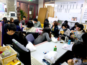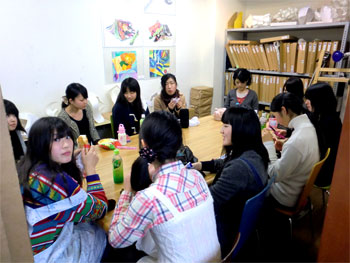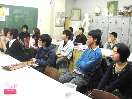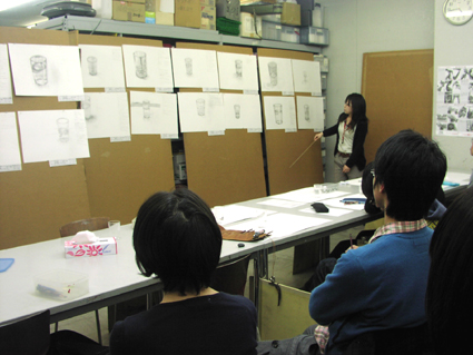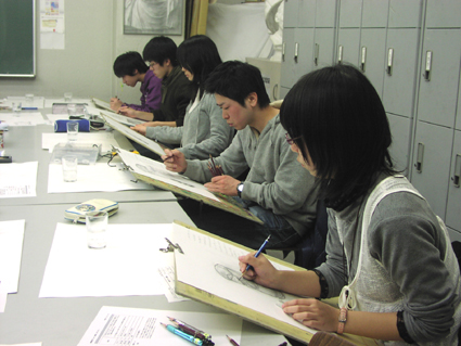09 February 京芸模試 2/7(月)・8(火)・9(水)と北山教室では、「直前講習京都市立芸大実技模試」が行われています。受験生の皆さん、お疲れ様でした!今は、描写・色彩・立体と3日間に渡る実技を終え、お昼休み中です。この後、講評会が始まります。今回の模試では61名の受験生で教室は満席状態です。 結果が気になるところです・・・毎年この時期は、京芸受験生にとってとても濃厚な時間になり、独特の緊張感と一体感があります。不安な気持ちを仲間と支え合い、入試に向けて頑張って!今回の模試の問題や出題意図は、2/17(木)の京芸ファイルアップに合わせてアスクメンバーサイト内にて解説する予定です。入試直前の確認として、京芸ファイルと共にチェックして下さいね。たまたま教室に来られた鈴木先生。2年前までアスクで講師をされていました(旧姓 三谷先生)。今はアスク通信の4コママンガでおなじみ。お子さんと一緒にこの後京芸作品展に行かれるそうです。京都市立芸術大学作品展HP⇒■■■吉井 [0回] 2011/02/09 (Wed) 14:25 アスクでのこと Trackback() Comment(0)