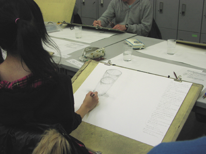 11 February 0211無料デッサン講座 雪までちらついて、また冬の寒さが戻ってきました。 去年の京芸入試(2月末)、当日すごく寒かった覚えがあります。 今年もここから寒さが続くのか、少し春が早いのか…… あったかくなる春が待ち遠しいです。 サイトウは春と秋が文句なく好きです。 夏と冬は、ちょっと寒いだ暑いだの文句ありで、まぁまぁ好きです。 でも「夏が好きそう」と言われます。色が黒いからでしょう。そうでしょう。さて! 今日は無料デッサン講座が、 京都駅前七条教室と滋賀・草津駅前教室で行われました。 今日のテーマは「観察」です。 ガラスコップに任意の量の水を各自に入れてもらいました。 それをまずは「文章」表現。そのあとデッサンにて「描いて」表現。 同じように見えるコップでも、各自の目の前にあるコップや水の情報は違います。 いかに、目の前のものの情報を読み取り、意識化するかがポイントです。 京都造形大の入学前プログラムなどで「文章で描写する」という課題があります。 この方法は昔からよく使われている方法のようで、 サイトウもアスクY先生から貸してもらって読んだ本で知りました。 言葉で意識したことは、絵でも描ける! とらえた言葉が漠然とした主観的なものだと、絵も主観的になります。 「水の量はいっぱい」「大きい」「水が綺麗」など、主観的な印象から、 「水の量はコップの何分の何のところまで入っているか」 「何と比較して『大きい』のか」という風に、 客観性もある言葉にしていくことがポイントです。 主観的な印象を表現するために、客観的な表現方法を育む… そんなことが今伝えたいことかな考えたり。 芸術と教育とはなんなのだろう…と、しっくりいく言葉探しをしている毎日です。 やるべきことはわかってる。まだまだ私にでも伝えられることはある。こちら草津の様子。 草津も同じテーマですが、モチーフはガラスコップじゃないみたいですね。 こんなふうに、同じことを伝えるために、方法は先生によって違うっていうのが、 アスクのいいところなのかなって思います。 高校1・2年生や中学生にとっての、次のイベントは、 3/19の芸大受験説明会です。進路を決めていくだいじな時期です。 なるべく行動を起こしましょう。 受験生のみんなは模試も終わって、入試直前。 体調に気をつけて、がんばっていきましょう。 <サイトウ> [0回]PR 2011/02/11 (Fri) 19:05 アスクでのこと Trackback() Comment(0)