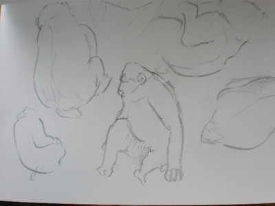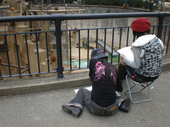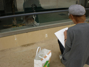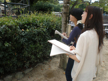 01 October 杉太郎の『動物園レポート』 こんにちは!「三度の飯より反射光」身の回りに溢れている反射光を探し出し、じっと見つめる…。最近はそんなエキサイティングな日々を送っています。杉太郎です。今日はなんとっ! STSP生授業の取材で『京都市動物園』に来ています。聞くところによると、今週木、金課題の為の資料を集める為に、はるばる動物園まで、動物をスケッチしにきたとの事です。 ↑杉太郎、動物園なる場所に初めて赴きましたが、いやはや、この世には色々な姿の動物がいるのですね…。なぬっ、生徒達はすでに園内に散らばりスケッチを開始してると情報が入ってきました。くっ、他の取材班に先を越されてしまうっ。突撃取材敢行します!! 皆、黙々とスケッチしています。動き回る動物達に悪戦苦闘。普段は静物を描いてますものね。ファイト! おやっ、こちらにいる動物はヒト科の「ひと」ですね。どうやら「ひと」というのはクロッキー帖を常に携帯する習性があるようです。杉太郎一つ賢くなりました。うわぁっ!いきなり襲いかかってきました。「ひと」、危険。注意すべし…。 お昼休憩中。本部にしている広場に集まり、皆でご飯です。こらこらっ、鳩は食べ物じゃないよ~。こちらは動物園内にある博物館の中です。剥製や骨などが保管されています。U先生…!大変だ、U先生が剥製にされて…なんだゴリラか。 そんなこんなで、早くも終わりの時間になりました。皆さん、スケッチははかどりましたでしょうか?今日は、動物園で現地解散。一日かけてスケッチしました。お疲れ様です。ゆっくり休んで、次の日からの制作、頑張って下さい!! <SGTR> [0回] 2010/10/01 (Fri) 19:23 杉太郎関係 Trackback() Comment(4)