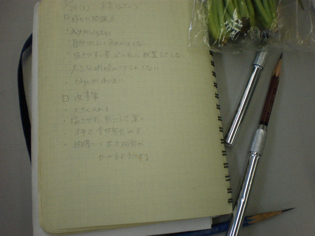 まずはパプリカを想像して描き、そして次に実物のパプリカを見て描く。今日はそんな課題を行いました。