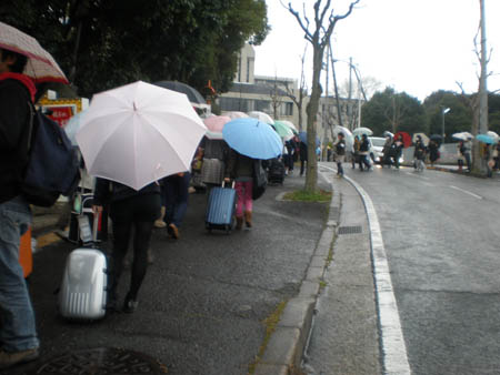 27 February 京都市立芸大入試 3日目 いよいよ本日は、京芸入試の最終日「立体」の日です。週間予報では、今日も雨となっていましたが、所々に晴れ間の見える曇り。お昼からは良く晴れました。風が強かったので、少し肌寒かったですが、やはり例年と比べると暖かかったです。 さすがに3日目にもなると、少し疲れが…と思いましたが、皆まだまだ元気でした。そして、先生の用意したキットカットや飴をほおばり試験へと向かいました。 本日の「立体」の課題内容はテーマ:かがやき材料:ストロー太 10本/ストロー細 80本/B4ケント紙 1枚※35cm×35cmのプラスチックダンボール(黒)を台として使用※試験終了後は、移動用カバーをして、体育館へ移動といったものです。そして、材料の接着は支給された両面テープのみで、ボンド類は使用できませんでした。まぁストローは木工用ボンドでは接着できませんしねぇ…。材料的に考えるとあたりまえなのですが、ケント紙の接着にもボンドが使えないことには、少し戸惑いがあったかもしれませんね。僕的には、ボンドと両面テープだと、両面テープの方が手っ取り早く接着でき楽な気がしますが、やはりいつもと違う状況というのは、少なからず動揺を生むものです。単純にどっちが良いとは言えませんね。ちなみに、去年、今年と立体を運ぶ際には、立体の周りを覆う移動用カバーが与えられていますが(07年度もですね)、生徒が一列に並び胸元に箱を抱えて体育館まで歩く…。そして、その箱を綺麗に並べていく…。想像するに、少し異様な風景です。※あくまでも想像で、実際に箱を持って歩いている状況は見たことがありませんが…。なにはともあれ、受験生の皆様「お疲れ様でした」中期、後期と国公立の入試がまだまだ続く生徒もいるかとは思いますが、とりあえず今日くらいは全て忘れてゆっくり休んでください。<S.I> [0回] 2010/02/27 (Sat) 20:47 大学のこと Trackback() Comment(1)