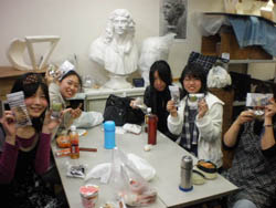 13 February 緊張感を和らげるプレゼント 本日は、京芸摸試1日目、描写。本番さながら、とても緊迫した雰囲気です。「しゃかしゃか」と鉛筆と画用紙が擦れる音だけが、教室に響いています。 そして…試験時間が終了し、お昼休み。皆お昼ごはんを食べ終わったの見計らって、本日のサプライズイベントが、 なんと、教務の上田さんと、実技の増山先生が明日はバレンタインデーということで、模試受験者全員分のチョコレートを作ってきてくれました。 皆、北山に天使が舞い降りたと大騒ぎ。緊迫した状況を和らげるとても良いプレゼントでした。いくら試験が近かろうと、緊張のしっぱなしは身体に毒です。時にはリラックスして大騒ぎするのも良いでしょう。しかも職員の分まで用意してくださり、僕もおいしく頂きました。非常に美味しかったです。ありがとうございます。そして、そんな騒ぎの後に、採点された作品が並び、講評が始まりました。再び緊張感が高まりますね。 皆さん結果はいかがだったでしょうか?良かった人も、悪かった人も、京芸はどの科も(総合芸術学科は異なる場合がありますが)、描写、色彩(着彩・色彩)、立体の3科目の合計点で勝負です。明日の色彩に向けて、気持ちを切り替えましょう。<S.I> [0回] 2010/02/13 (Sat) 20:18 アスクでのこと Trackback() Comment(1)