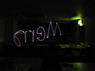 25 December ゴウカク リスマス! 「メリークリスマス」 「京都アートスクール」 「うえすぎせんせい」 「上田ちん大好き」 歌のプレゼントをくれたy先生の顔……だったはず昨日は、「ゴウカクリスマス」でした。上の写真は、s先生プレゼンツの特別授業、「光で描く」で描いた作品です。なかなかうまくいきました! ケーキデコレーションして、不良のサンタさんに殴られた国語の先生がいて(縫合済み)、トナカイに蹴り飛ばされて顔が傷だらけになった人と変態が仲良くしてて、 「ウェッティのミラクルクッキング」で上杉先生が料理の腕を振るってくれて、みんなでプレゼント交換をしたりして、あっという間の3時間でした。年末最後に、京芸模試があり、もう一踏ん張りな人もたくさんいますが、ちょっと息抜きに、あったかい空間で、楽しめたのではないでしょうか。<サイトウ> [0回] 2009/12/25 (Fri) 10:39 アスクイベント Trackback() Comment(0)