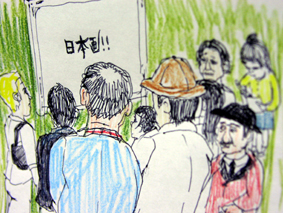 18 October 日本画展 見学! 先日の、10/14(水)ask浪人生と講師数名で、京都文化博物館へ『日本画展』見学に行きました。 <日本画展> 京都を代表する企業である京セラ(創立50周年)と ワコールホールディングス(同60周年)の創業を記念し、 両社が所蔵する上村淳之、片岡球子、加山又造、杉山寧、 東山魁夷、平山郁夫ら戦後日本画壇を代表する 45人の巨匠作品を展示。日本画の画面には「洗練」という言葉を感じます。格好良かった。洗練されたシンプルな表現をみていると、ひとっとびでその境地へ行きたくなるし、行ける気がしてしまいます。いざ、筆を動すとその難しさを知ります。要素を減らすと、ただの真似事になってしまい寂しい画面になる。自分で創造し、そして殺ぎ落とすその過程でそれぞれの洗練を目指してほしいと思います。デザイン科出身の私にも、「シンプル」は魅惑です。少ない要素で画面を成り立たせるには、ひとつひとつの要素の品と余白の品、そしてそれらが実用性という親切心に包まれてて……みたいなのがデザインの理想でした。日本画展からもそういう気持ちを改めてもらえて行ってよかったです。洋画出身askY師もギャラリートーク中、上村先生とのトークで存在感を放ち、素晴らしかったですね。みんなも何か得られたかな? <サイトウ> [0回] 2009/10/18 (Sun) 06:07 アスクイベント Trackback() Comment(2)
