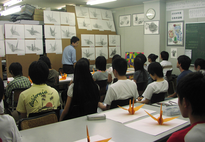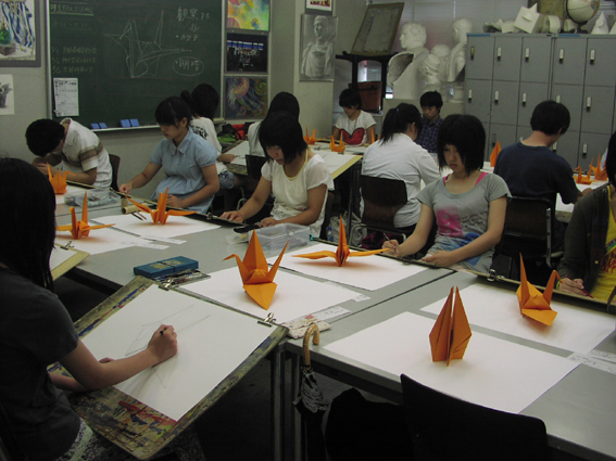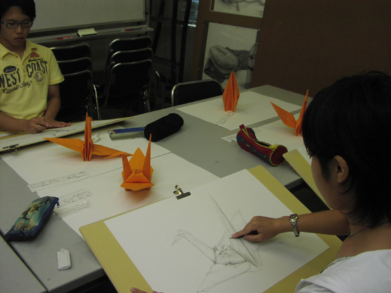 デッサンの基礎となる「明暗の変化」を観察し、表現して、折鶴の「立体感」を描写することが課題テーマでした。