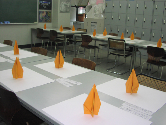 今回、30体完成まで、残り7羽…というときに、教務のUさんに4羽ほど折鶴を折る作業を手伝ってもらったのですが、Uさんは私が23羽折りながら見つけられなかった、折鶴をきれいに折る方法を知っていました…。