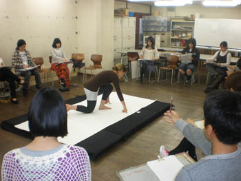 20 April 09年度 第1回着衣クロッキー会!! 先週、4月18日の土曜日に、北山教室でクロッキー会が開催されました。今回は浪人生13名、カルチャー生1名、卒業生2名の計15名が参加してくれました。皆、いつになく真剣なまなざしで、熱心に楽しそうにクロッキーに取り組んでいました。↑モデルには昨年度のアスク卒業生、Mさんに来てもらいました。このMさん、まるで3歳の頃からクラシックバレエの英才教育を受け、2年程ロシアにバレエ留学していたかの様な、数々のナイスポージングで参加者達を大いに湧かせました。↑クロッキー会が終わってから、参加者一人一人に、今回描いた中で一番出来の良い、「今日の一枚」を選んでもらい、並べて全体講評を行いました。いつもは他の人のクロッキーを見る機会があまり無いので、皆、新鮮なまなざしで、他の人の描いたクロッキーを見ていました。卒業生の参加者たちの上手な作品も見ることが出来て、多くの収穫があったのではないでしょうか。クロッキーはなぜこんなに楽しいのか?誰か知ってる人いたら先生に教えて下さい。次回のクロッキー会は、5月9日(土)…着衣クロッキー会5月23日(土)…ヌードクロッキー会を予定しています。通学生に限らず、卒業生、春期講習に来てくれた講習生の皆さん、一般の方々の参加もお待ちしております。時間、参加料などのクロッキー会に関しての詳細は、後日ホームページにて掲載しますのでチェックして下さいね。 ウエスギ [0回] 2009/04/20 (Mon) 22:22 アスクでのこと Trackback() Comment(1)