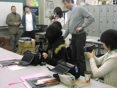 本日は、京都嵯峨芸術大学のメディアデザイン学科より、松本 泰章先生と、入試課の荒芝さん、石場さんにお越しいただきました。