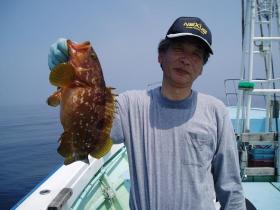 27 May ASK釣り紀行 五月二十三日(金) 今日は快晴です。風もなく、立体授業もなく、べた凪です。 日本海までやってきました。 えさの活いわしを針につけて、第一投。いきなりあたりがあり、まずは中サイズのガシラをゲット。 その後、投入ごとにガシラが釣れてきます。 突然ガガーン!! 写真のアコウです。 アコウの色を絵の具でつくるなら、上杉先生、どのように混色しますか? 袖長 省二 [0回] 2008/05/27 (Tue) 13:26 魚釣り Trackback() Comment(2)