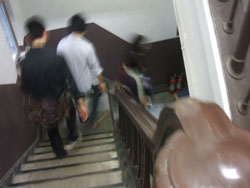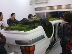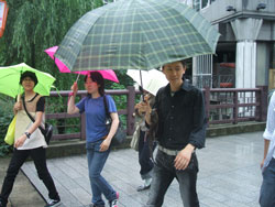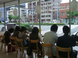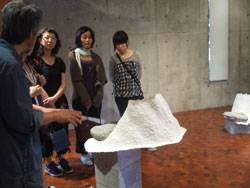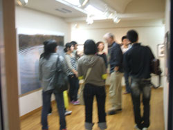 28 May 「KYOTO ART MAP全踏破の旅」報告! 5月24日(土)KYOTO ART MAPを全部見て回る企画が実行されました。KYOTO ART MAPは例年この時期、京都の代表的な現代美術系画廊が共同で取り組んでいる展覧会企画で、10周年目の今年は美術手帳6月号でも大きく取り上げられています。各画廊一押しの作家が同時期に展覧会をするということで、ask美術史の『番外編』として参加しました。askでは受験生でも美術史は必要だということで高卒生のカリキュラムに入れているのですが、今回の企画はいわば美術史の現在進行形を学ぶということですね。11時半に四条河原町のギャラリーギャラリーをかわきりに、マロニエ〜なかむら~射手座~同時代~ニュートロン~アーティスロング~石田大成社ホール(これはART MAP企画ではないが、当日は金美でラグビーをしていた上杉先生の推薦で計画に入れる)~恵風~16~はねうさぎ~虹~すずき~VOICE。ask集合が10時半〜ラストのVOICEを出たのが8時半ということで、10時間かけてART MAP+1の14画廊を巡りました。生徒10名が参加しました。かなりムチャな計画でしたが、なんとか市バス1日乗車券500円だけで地下鉄を使わずに全画廊をまわることができました。左)最初のギャラリーギャラリーは渋いレトロビルの5Fにあった。右)「旅」は小雨がふる中決行される。雨もきれいでよかったです。左)同時代ギャラリーの隣では京芸OBの元ask生が店を開いてた。右)ちょっと変な?手作りアクセサリーの店。女子に大人気。左)くわしく作品解説をしてくれた岡普司氏。Y師の大先輩です。中)特に人気のあった吉岡佐知展。上杉先生の先生でもあった。右)京芸油画の鶴田先生の個展も。緊張しました。左)最老舗のギャラリー16。白川をわたって蹴上へ。右)ここから北へ上がるとあの「みやこめっせ」まですぐです。左)遅めの昼ごはんをアーティスロング隣のコンビニで食べる。右)はねうさぎ向かいの「肉の荒井亭」揚げたてコロッケを食べる。左)はねうさぎの作家中島麦さんは三谷先生の友人でした。右)虹ではなんと車がひっくり返っていた。男子に好評でした。ラストのヴォイス・ギャラリー。お疲れさまでした。今後の展覧会情報もゲットできました。疲れました。Y師(大文字以来の楽しさでした。と思っているのは僕だけ?) [0回] 2008/05/28 (Wed) 21:28 アスクイベント Trackback() Comment(2)