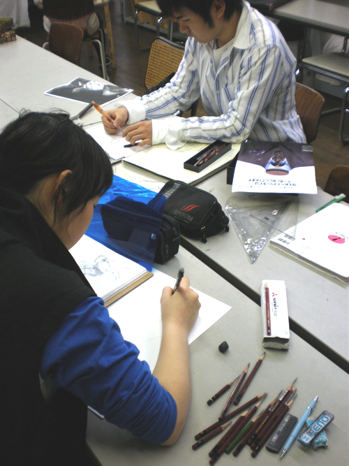 13 May 彦美での説明会 提携校の彦根美術研究所で芸大説明会があり行ってきました。毎年恒例の説明会ですが、新校舎ができた昨年からは、彦根駅前ということもあり、参加者も来やすくなったと思います。今年は京都精華大学、京都造形芸術大学、成安造形大学の入試課の参加も得て、昨年以上の盛況ぶりでした。午後1時開会。所長の挨拶、askによる芸大受験についての講演、3大学による大学紹介が3階であった後、2階でaskからの国公立芸大合格再現作品と3大学の合格作例を見たり、大学別のブースで個別に説明が受けられるという、かなり高密度なものだったと思います。 Y師京都精華大学入試課の若手イケメン2人組京都造形芸術大学大野木先生 映像を使っての学内紹介成安造形大学の岡田修二先生 熱く語っていただきました 作品展示(ask京芸再現群) [0回] 2008/05/13 (Tue) 02:35 未選択 Trackback() Comment(0)