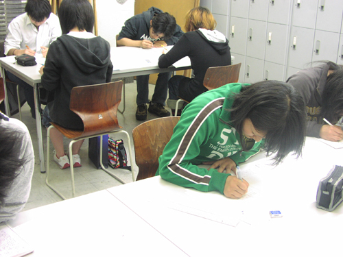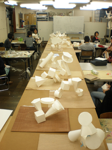 09 May 金曜日のSTコース 木曜日、金曜日のスタンダード(ST)コースでは、対策ごとにわかれて課題を制作しています。 構成静物のデッサンをする生徒や、 ストーリーマンガの対策をする生徒。 (今週の課題は、『キャラクター造形』) そして、京都市立芸術大学を受験する生徒。 今週は、立体構成の課題でした。 立体構成の講評では、こんなふうにずらりと立体作品が並びます。 並べられた作品をひとつひとつ講評していきます。 どのような課題もそうですが、自分が制作した作品だけではなく、 誰かが制作した作品にも、今後の制作のヒントがきっと隠れている。 サカグチ@北山 [0回] 2008/05/09 (Fri) 21:51 日常の出来事 Trackback() Comment(1)