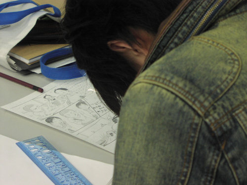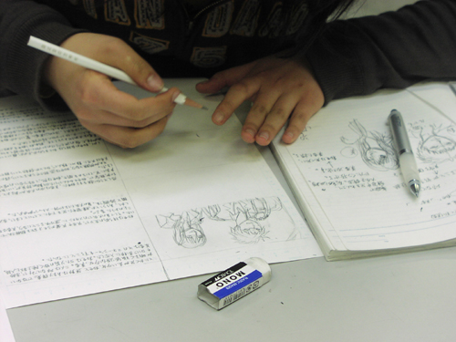 10 May マンガ特講 本日から、七条教室で『マンガ特講』が始まりました。 毎週土曜日 14:00~18:00 全6回 行います。 今日は、「与えられたラストシーンから発想して、ストーリーマンガを考えていく」という課題を制作しました。 終わりの部分がはじめから与えられているというのは、少々無茶な課題に思えるかもしれませんが、たとえば友達に何かを話すとき、たいていの場合は、話の最後にくる出来事を目指して話しはじめていますよね? 今回はそういったことを踏まえながらストーリーを考えていくことと、それをマンガにしていくことをポイントに制作しました。(もちろん、他にもストーリーを考えていく方法はたくさんあります。それらは、今後のマンガ課題を制作するなかで学んでいきます)。マンガ特講の詳しい説明はこちら→■ ちょうど、昨日読んでいた本(Y先生に借りている本)の中に、フランスの精神分析家ジャック・ラカンの「前未来形として語られる過去」という内容がありました。噛み砕いていえば、『話し終えたときの相手の反応を想像するから、人は話し始める』ということです。そしてそれはストーリーでも同じことだといえます。 制作時間が短くなるといけないので、ラカンの話は省きましたが、興味がある人は、内田 樹(うちだ たつる)という人が書いた本を読んでみてください。『疲れすぎて眠れぬ夜のために』や、『寝ながら学べる構造主義』にもラカンの話が出てきます。 ちなみに、Y先生から借りている本のタイトルは、『先生はえらい』ですが、先生がえらいということについて延々と書かれている本ではありません。 サカグチ@七条 [0回] 2008/05/10 (Sat) 21:04 アスクでのこと Trackback() Comment(0)
