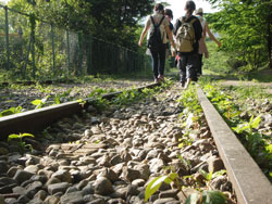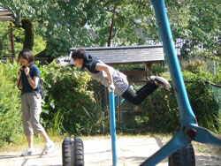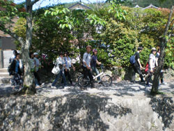09 May 今年もあったのか!?Y師による京都散策 今年もありました。大文字山を下山した後、哲学の道を南下→途中法然院に立寄り→児童公園で鉄棒して→永観堂を通り過ぎて→南禅寺→水道橋に登って、疎水べりをインクラインまでというだいたいの基本パターン。思いつきで始めた大文字後の「散策」も、なんと今年で12年目、結局毎年ある。そして毎年新たな面白さがある。そしてこの時期の東山の空と新緑の美しさは最高です。桜や紅葉より絶対いいと思う。今年は三条通りのギャラリーが残念ながら休みの日なので、そこで解散。地下鉄蹴上げ駅から帰る生徒はそこでお別れして、三条京阪や東山のバス停まで歩く者達はさらにぞろぞろと西に向かって歩く。 今年は三条通りのギャラリーが残念ながら休みの日であるはずだったのだが、実は休みじゃなかった。という訳で、さらにギャラリーも見て、路地裏の神社に参って、最後は東山三条のマクド。蹴上で帰った人、ごめんなさい。どこで間違えたのか、デマを言ってしまった。しかし5/24(土)に『キョウトアートマップ全踏破』という企画を予定してますので、京都のギャラリー紹介はその時ということで...。 心地よい筋肉痛も終わりつつある...Y師より [0回]PR 2008/05/09 (Fri) 03:59 アスクイベント Trackback() Comment(0)