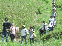 04 May 大文字登山 さてさて今年もやってきました。恒例のアスクイベント大文字登山!5月6日(火)の11:00に銀閣寺道の公衆トイレ付近に集合です。例年通り、OB参加可、OG参加可、家族参加可、カップルは要相談。持ち物は、お弁当、お茶、タオル、帽子、やる気、おやつ(バナナOK)です。皆で元気に登りましょう。ちなみに、雨天時は中止になります。微妙な時は、できるだけ登ります。 当日は、かなりの暑さが予想されるので、お茶とタオルと帽子(タオルを帽子代わりにしても良い)を絶対に忘れないようにしましょうね! 忘れてしまったら、ある意味山よりも高く登れますので御注意下さい。 <S.I> [0回] 2008/05/04 (Sun) 20:43 アスクイベント Trackback() Comment(2)
