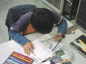 20 April こども教室 アスクでは土曜日の午前中に、こども教室もやってます。小学1年生〜中学1年生までが対象の教室で、今回の課題は、紙粘土を使ってチョウチョを造るというものでした。羽の形と、模様を自分で考えてから立体にします。まぁ課題はさておき、とにかく、むにむにむにむにむにむにむにむにむにむに…こねこねこねこねこねこねこねこね…形や模様を考えるのはほどほどに、むにむにむにむに…こねこねこねこねこね…。最終的には、チョウチョ以外にも色々なものが出来上がりました…。粘土の課題の時に毎回思いますが、こどもって、本当に粘土好きですねぇ。写真は羽の模様を考える小学生(粘土中は写真撮れませんでした…。) <S.I> [0回] 2008/04/20 (Sun) 13:04 アスクでのこと Trackback() Comment(1)