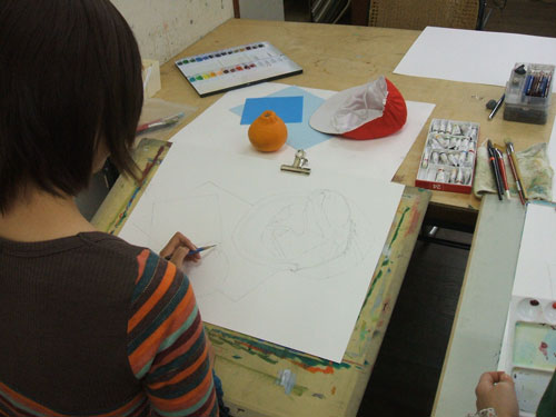 27 April 再現制作 京都アートスクールでは、各大学の合格者に合格再現作品の制作を依頼しています。再現作品は買い上げになるので、ほんの少しですがお金も出ます。という訳で(というと失礼ですが)多くの合格者が再現には協力してくれています。だいたいの生徒は合格発表後すぐに制作してくれるのですが、京芸の場合は4課題もあるので、かなりしんどい。あと1枚....といったところでタイミングを失ったりすると、入学式、オリエンテーション、最初の授業、クラブどうしょうか、などなど、大学が忙しくなり、どんどんと日がたってしまい再現が著しく困難になったりもします。そんな日々にも少し落ち着きが訪れたのか、ここ数日、再現制作のため、久しぶりにaskに戻ってくる京芸合格者が多数います。一応、入試直後に試験でどんな作品をつくったかの調査をしているので、その紙を見れば、だいたいは思い出すのですが、微妙な感じはなかなか思い出せず、四苦八苦して制作してくれています。みんな、クラブに入ったとか、バンドを組んだとか楽しそうな話題も提供してくれます。今日は、NET生のSさん、講習生のMさん(二人ともデザイン科現役合格)が来てくれ、着彩と立体をなんとか完成させてくれました。あとは、色彩と最難関の描写がんばって下さい。s(Y師) [0回] 2008/04/27 (Sun) 21:14 アスクでのこと Trackback() Comment(0)