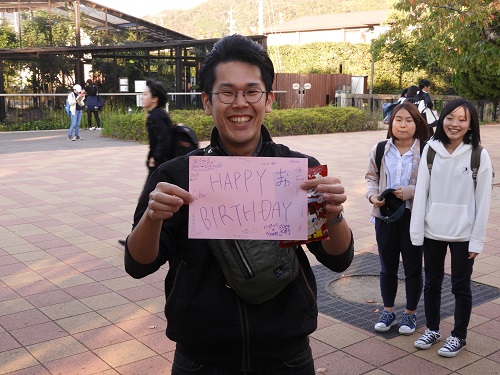 動物園実習の最後は、生徒達から、我らが原田先生へのささやかな誕生日祝い。