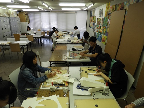 24 June 今日の北大路校 今日は久しぶりに梅雨の晴れ間で夏の様な日差しに早くも夏バテしそうな陽気でした。そんな中北大路校では受験生も基礎生も立体の授業が行われています。基礎生は初めて紙立体の制作をした生徒も多いのではないでしょうか。誰でも最初は初心者です。まずは素材に慣れていきましょう。基礎クラスの様子 受験クラスの様子 片岡 [0回] 2018/06/24 (Sun) 13:47 アスクでのこと Comment(0)