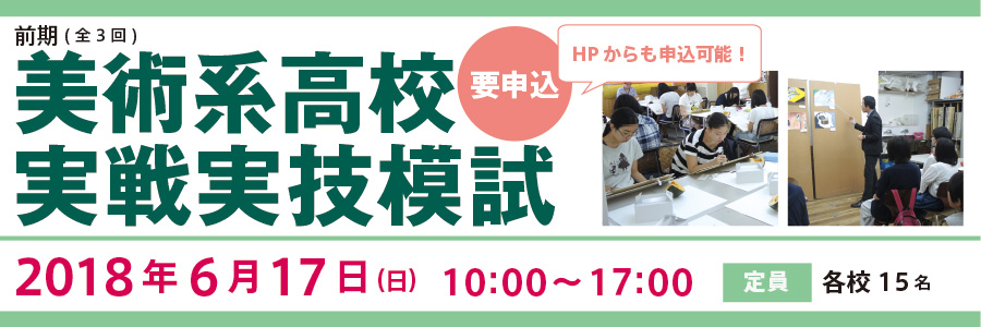 05 June 美術系高校実戦実技模試 こんにちははらだです来週、6/17(日)に美術系高校受験を考えている中学3年生のための美術系高校実戦実技模試が行われます。 昨年の様子はコチラ年間で全3回行われる美術系高校実戦実技模試、そのうちの第1回目ですこれまで対策してきた自分の力を一度実戦形式で確認してみませんか?初めての方もこれから対策をスタートするための足がかりに受験してもOK美術系高校受験を考えている皆さんの申込みをお待ちしています。はらだ [0回] 2018/06/05 (Tue) 16:33 アスクでのこと Comment(0)