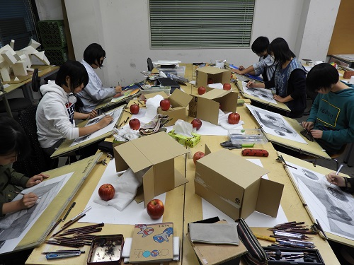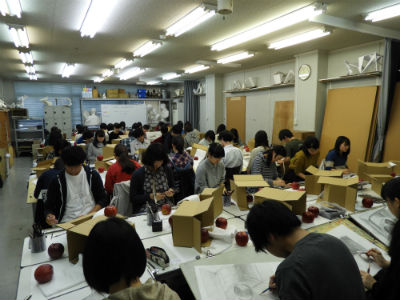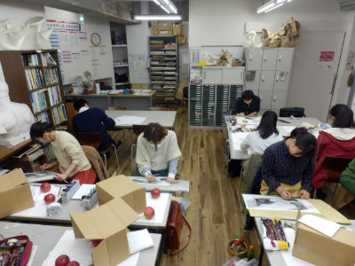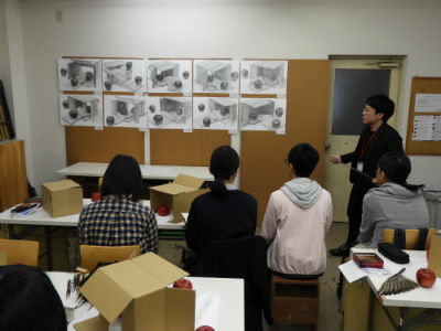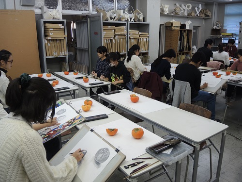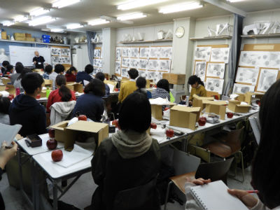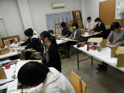 25 October 11月23日(木・祝)無料デッサン講座のお知らせ こんばんは。実技講師の上杉です。11月23日(木・祝)、今年度第5回目の無料デッサン講座を七条校・北大路校・彦根校の3校で行います。 詳しくはこちらから11月23日(木・祝)無料デッサン講座で描くモチーフは「柿」。・入試で実技試験が出る工学部系志望の受験生。・美術系高校を志望している中学3年生。・美術系大学への進学をぼんやりと考えている高校1・2年生。・特に受験目的ではないが、純粋にデッサンを学びたいと思っている人。・既に実技対策を始めているが、ASKの授業を一度受けてみたいと思っている人。無料デッサン講座には様々な人が参加しています。この秋、一歩踏み出し、ASKで鉛筆デッサンを学んでみませんか。鉛筆の削り方、座る姿勢、プロセスの手順等、初心者の方にも分かりやすくレクチャーします。「観る」楽しさ、「描く」楽しさを参加者の皆さんと分かち合えるような時間に出来たらと思っています。多くの方の参加をお待ちしています。※各校、定員16名までとなっています。早めのお申し込みをお勧めます。昨年度の無料D講座の様子 上杉 [0回] 2017/10/25 (Wed) 21:02 アスクでのこと Comment(0)